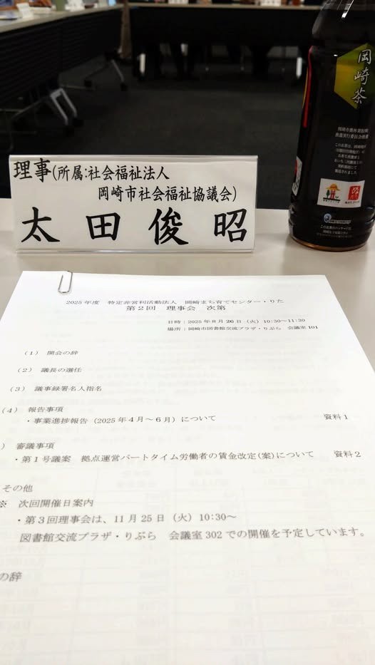 「岡崎まち育てセンター・りた 第2回理事会」に出席しました。