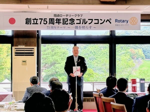 この寄附金は、岡崎ロータリークラブ75周年を記念してチャリティゴルフコンペを開催し、そこで集められた収益金を社会貢献活動の一環として寄附していだいたものです。
